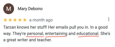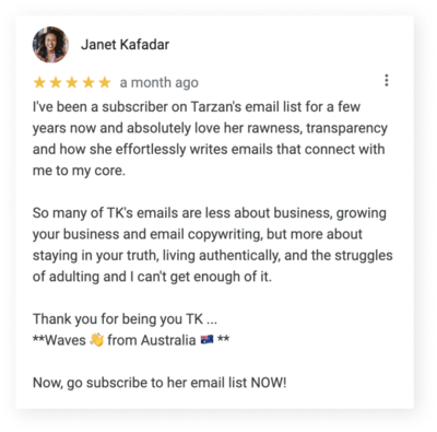 Wanna try it first? Here’s a sample of what it’s like when your inbox is lit up with Tarzan. Hint: These are even better when they land in your inbox, so...